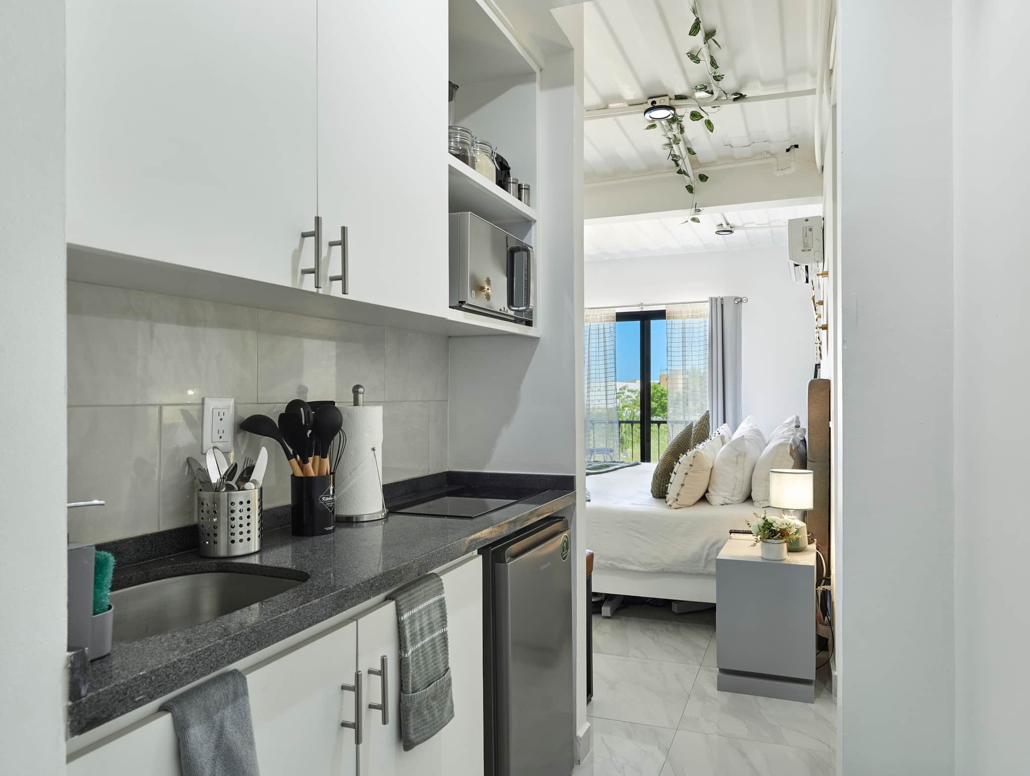 La combinación armoniosa de elementos modernos e industriales te brindan una sensación de hogar lejos de casa.